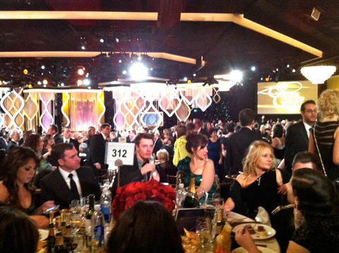 ハリウッド外国人記者協会(HFPA)の投票で決められるゴールデン・グローブ賞も、今年で記念すべき70回目。HFPAの会員で、日本映画ペンクラブの会員でもある小西未来氏の誘いを受け、1月13日(現地時間)の授賞式に参加した。ゴールデン・グローブ賞の授賞式は、アカデミー賞などと違ってパーティー形式で行なわれるのは、ごぞんじのとおり。ノミネートされたスターだけでなく、HFPAの会員や、われわれゲストもテーブルで食事やお酒を楽しみながら、式の進行を見守るのだが、実際にそれがどんな雰囲気なのか、期待を高めてLAに向かった。到着したのは授賞式の前日。その日の夜、すでにプレパーティーが行なわれており、ワインスタイン・カンパニーとユニバーサル主催の2ヶ所をハシゴした。両会場とも、明日の主役になるキャストが気軽に写真に応じるなど、すでにゴージャスな盛り上がりをみせ、圧倒されてしまった。