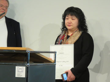 今年68回目のベルリン国際映画祭が2月15日から25日まで開催され、24日の授賞式の前日、23日夕、キネマテーク映画テレビ博物館のあるフィルムハウス4階ホールでFIPRESCI賞の授賞式が行われました。審査は審査員9名が3名ずつに分かれて行い、コンペティション部門、パノラマ部門、フォーラム部門から各1作品を選びました。