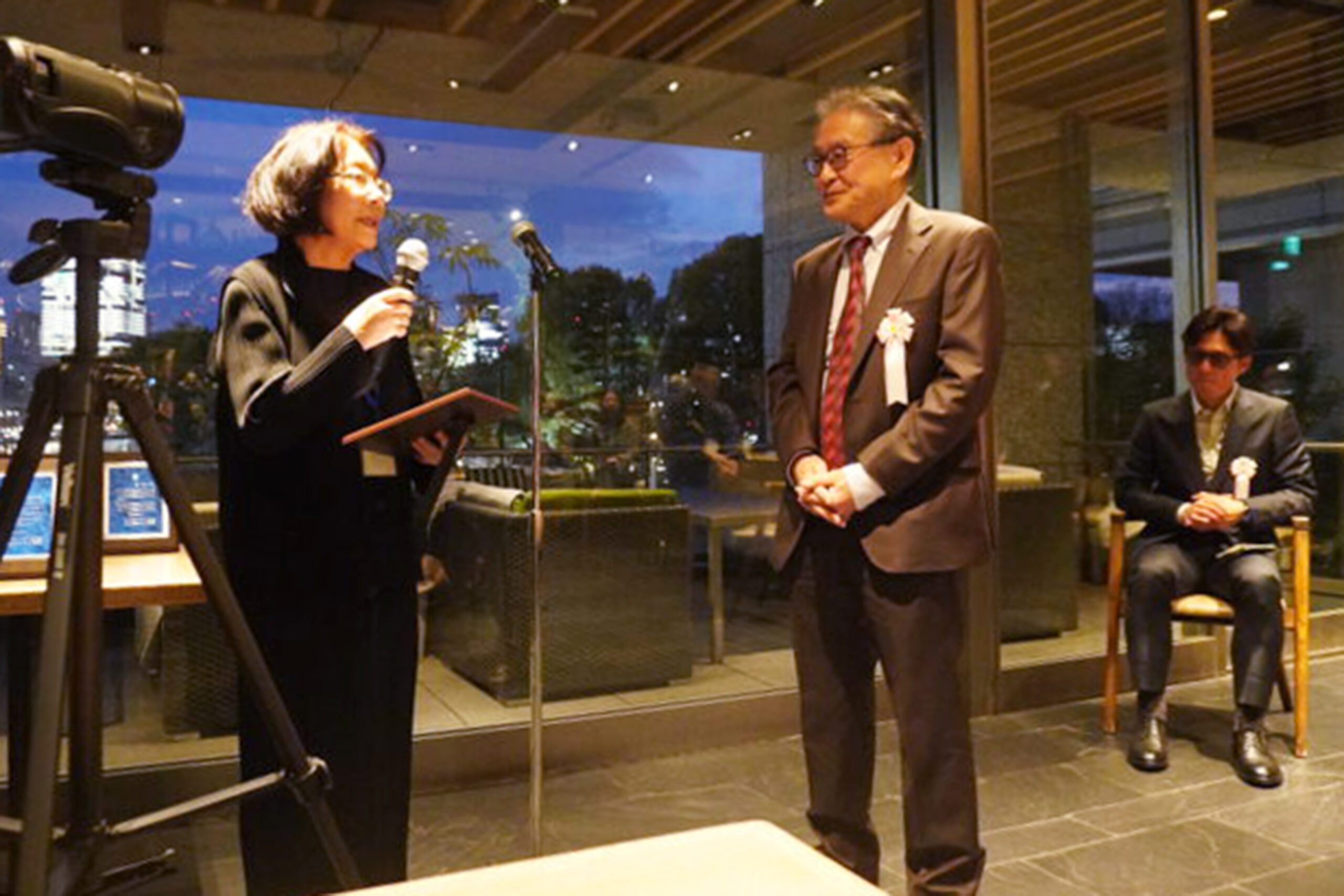 日本映画ペンクラブ会員でもある文化放送アナウンサー鈴木敏夫さんの開会挨拶から授賞式が始まり、渡辺祥子代表が受賞者の皆様に記念の盾を授与。