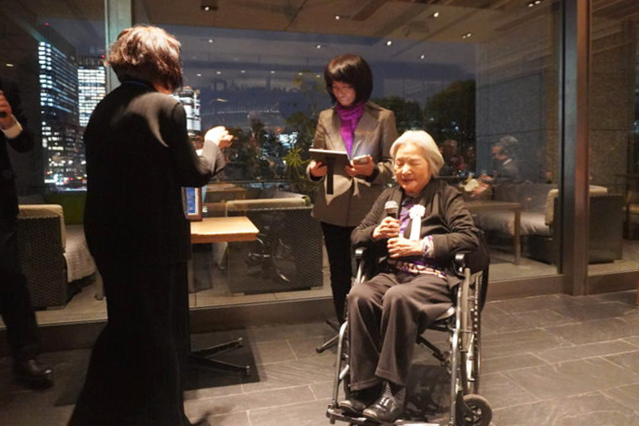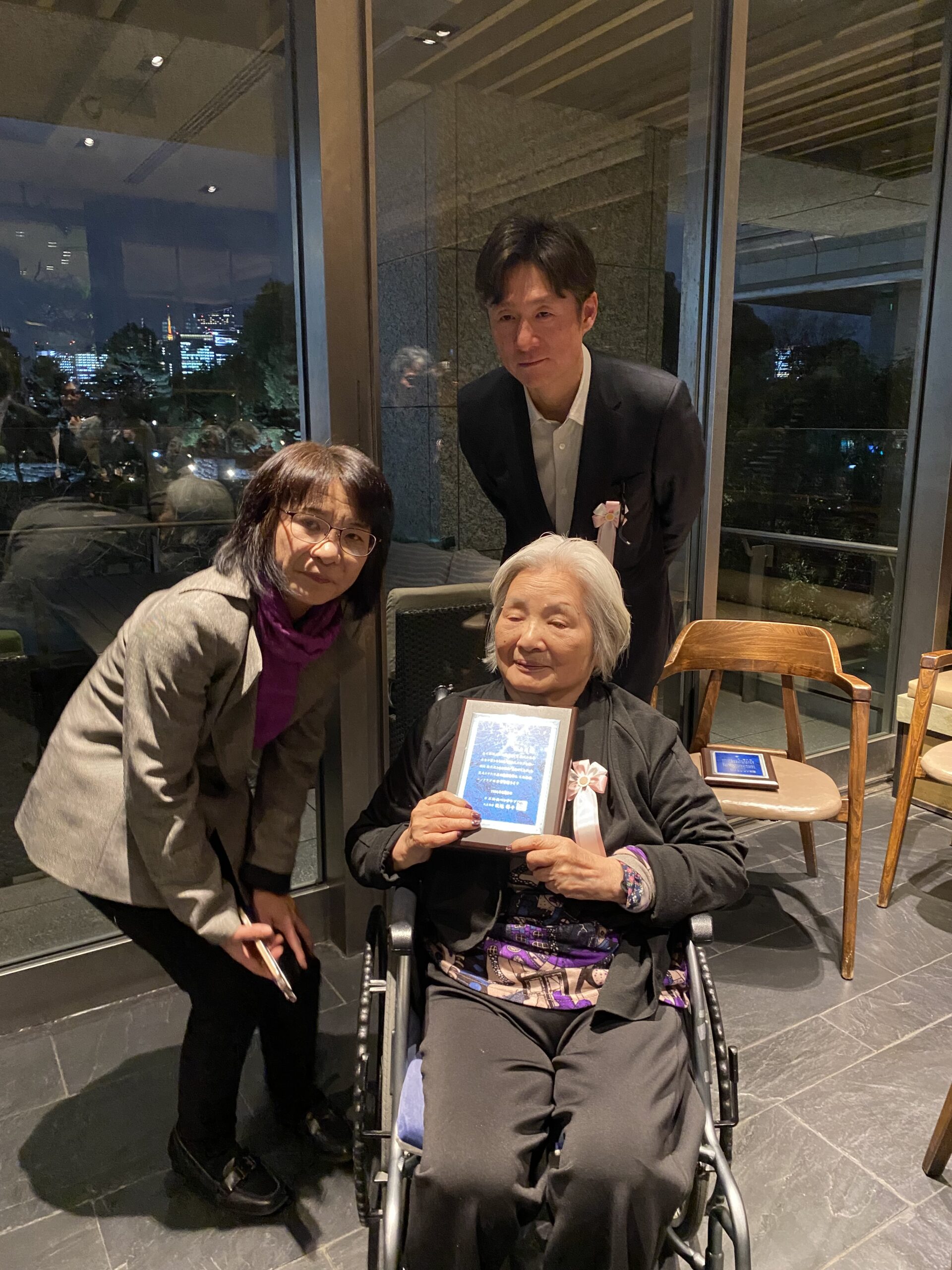 功労賞受賞者で『よみがえる声』共同監督でもある娘の麻衣さんと登壇された朴壽南監督は「小学校のころから賞というものに縁がありませんでしたからうれしいです」とはっきりしたお声でコメント。